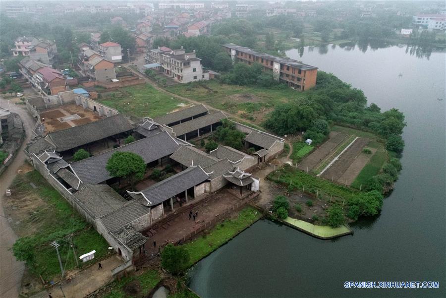 JIANGXI, 28 abril, 2019 (Xinhua) -- Vista aérea del Ancestral Santuario de la Familia Wu, un histórico complejo de edificios, en el Distrito Nanchang, en Nanchang, en la provincia de Jiangxi, en el este de China, el 28 de abril de 2019. El gobierno local planea revitalizar la economía rural por medio de la integración del turismo con la protección de reliquias culturales y sitios históricos. (Xinhua/Peng Zhaozhi)