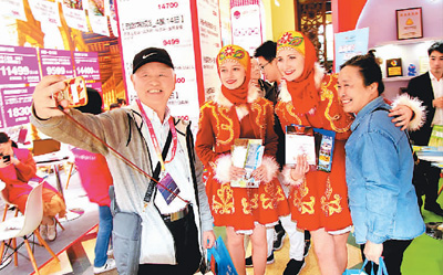 En la foto: el 18 de abril, se celebró en el Centro de Exposiciones de Shanghai la XVI Exposición Mundial de Turismo de Shanghai (Travel Expo), en la que participaron diversas provincias y ciudades, así como agencias de turismo y oficinas de lugares escénicos del extranjero. Algunas rutas con peque?os flujos de viajeros en países como EE.UU son muy llamativas. La imagen muestra a los turistas haciéndose fotos con el personal de las agencias de viajes extranjeras vistiendo trajes tradicionales.