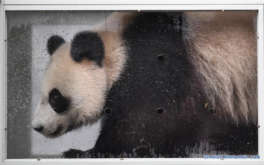 SICHUAN, 29 abril, 2019 (Xinhua) -- Ru Yi, un panda nacida en 2016, es captado dentro de la jaula de transporte en la base de Bifengxia del Centro de Conservación e Investigación de Panda Gigantes de China en Ya'an, provincia de Sichuan, en el suroeste de China, el 29 de abril de 2019. Los investigadores chinos celebraron una ceremonia para despedir a Ru Yi y Ding Ding, que vivirán en Moscú para un proyecto conjunto de investigación de 15 a?os. Ru Yi, un macho de tres a?os, y Ding Ding, una hembra de dos, llegarán a Moscú a las 22:00 del lunes (hora de Beijing), según el Centro de Conservación e Investigación de Panda Gigantes de China en la provincia de Sichuan. (Xinhua/Xue Yubin)