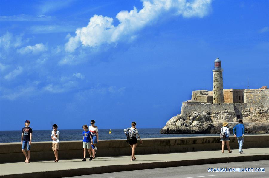 LA HABANA, 4 mayo, 2019 (Xinhua) -- Imagen del 19 de abril de 2019, de turistas extranjeros caminando por el malecón en La Habana, capital de Cuba. Cuba cerró el primer cuatrimestre con un crecimiento de 7,2 por ciento en el arribo de turistas, cifra preliminar ligeramente superior a la planificada para alcanzar en 2019 los 5 millones 100.000 visitantes, informó el sábado el ministro de Turismo, Manuel Marrero. (Xinhua/Joaquín Hernández)