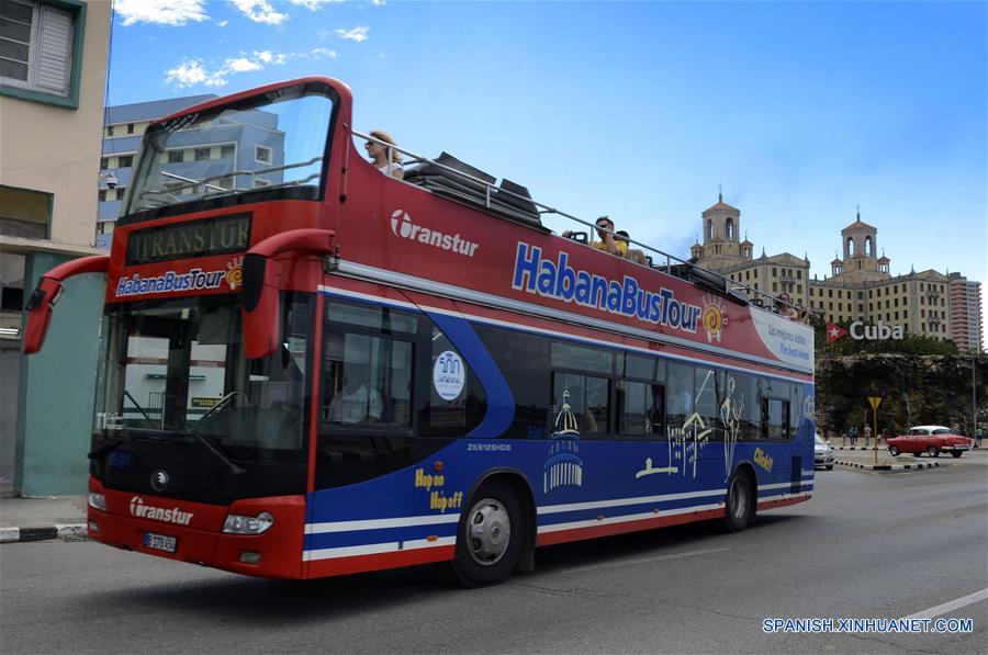 LA HABANA, 4 mayo, 2019 (Xinhua) -- Imagen del 19 de abril de 2019, de un ómnibus de la marca China Yutón, destinado al servicio del turismo, circulando por la avenida del malecón, en La Habana, capital de Cuba. Cuba cerró el primer cuatrimestre con un crecimiento de 7,2 por ciento en el arribo de turistas, cifra preliminar ligeramente superior a la planificada para alcanzar en 2019 los 5 millones 100.000 visitantes, informó el sábado el ministro de Turismo, Manuel Marrero. (Xinhua/Joaquín Hernández)