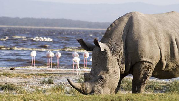 El lago Nakuru aloja varios tipos de flamencos -entre ellos los de color rosado, que hacen las delicias de los turistas- y unas 450 especies de aves acuáticas, además de 56 tipos de mamíferos, incluidos rinocerontes blancos, negros y leones.