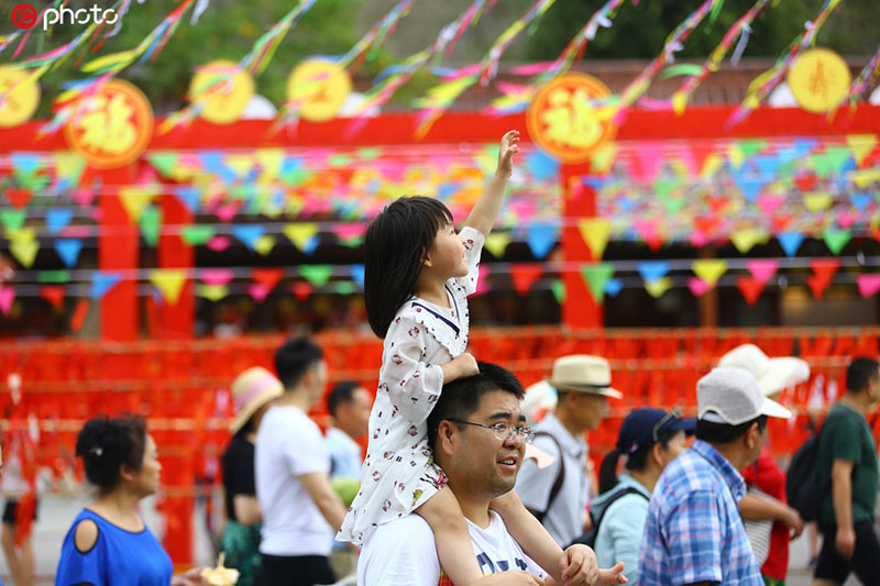 Una ni?a al hombro de su padre durante una visita a Sanya, provincia de Hainan, 3 de mayo del 2019. [Foto: IC]