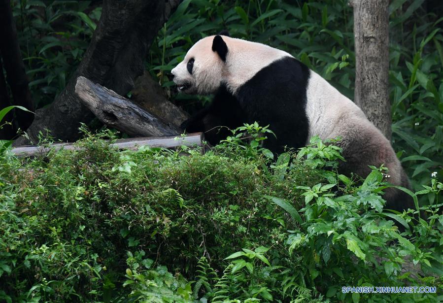 TAIPEI, 6 mayo, 2019 (Xinhua) -- El panda gigante Tuantuan juega en el Zoológico de Taipei, en Taipei, Taiwan, en el sureste de China, el 6 de mayo de 2019. En el Zoológico de Taipei, los dos pandas gigantes Tuantuan (macho) y Yuanyuan (hembra) han atraído a grandes multitudes ansiosas por observar a los osos en los últimos diez a?os. Los dos pandas gigantes fueron enviados a Taiwan desde la parte continental china en 2008. En 2013, Tuantuan y Yuanyuan tuvieron un bebé llamado Yuanzai. (Xinhua/Zhang Guojun)