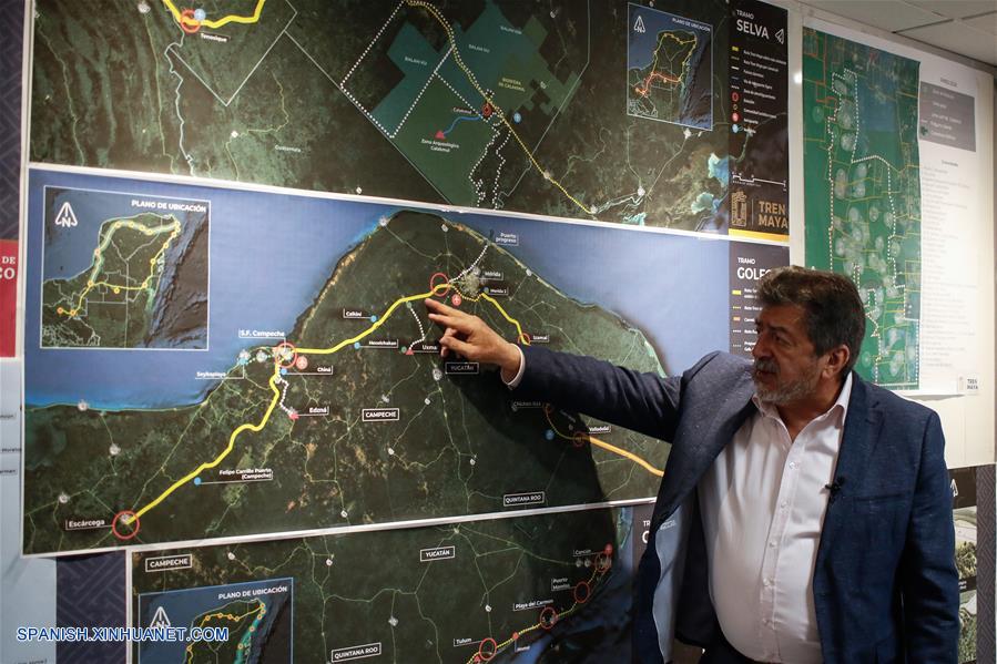 Imagen del 5 de marzo de 2019, del director del Fondo Nacional de Fomento al Turismo (FONATUR), Rogelio Jiménez Pons, se?alando un mapa durante una entrevista con la Agencia de Noticias Xinhua, en la Ciudad de México, capital de México. México está "deseoso" de participar en la iniciativa de la Franja y la Ruta, propuesta por China, para dinamizar el desarrollo en conectividad e infraestructura turística, afirmó el director del Fondo Nacional de Fomento al Turismo (FONATUR), Rogelio Jiménez Pons. (Xinhua/Francisco Ca?edo)