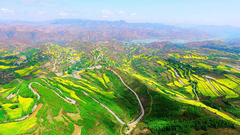 Parque de la monta?a Quiqing en Zhangxian, provincia de Gansu, lleno de colza florecida. [Foto: Wang Jinsheng]