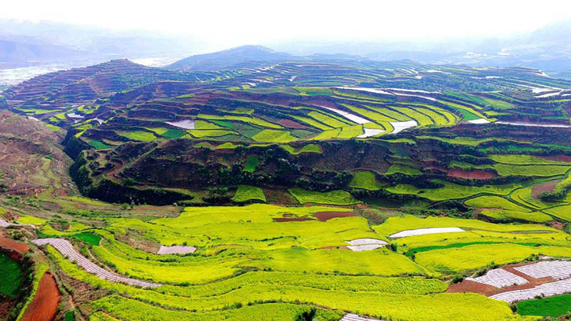 Parque de la monta?a Quiqing en Zhangxian, provincia de Gansu, lleno de colza florecida. [Foto: Wang Jinsheng]