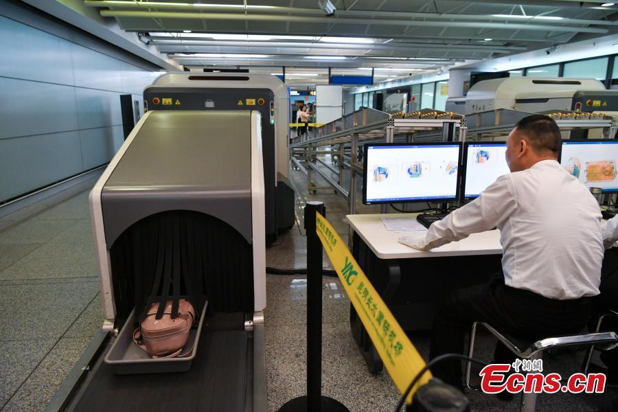 Un aduanero revisa el equipaje de un pasajero utilizando un escáner. La aduana de Kunming exhibe productos incautados vinculados a especies en peligro de extinción y la vida silvestre en el Aeropuerto Internacional de Changshui, Kunming, provincia de Yunnan, 8 de mayo del 2019. (Foto: servicio de noticias de China/ Ren Dong)