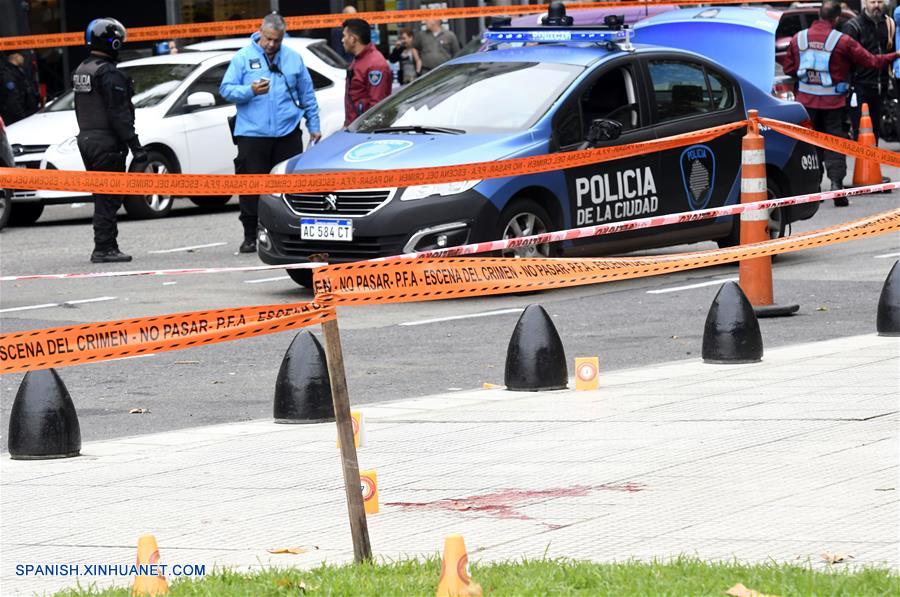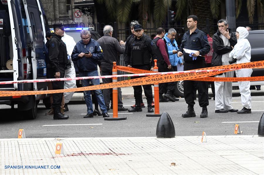 Elementos de la policía científica inspeccionan el sitio donde ocurrió un atentado en contra del diputado argentino, Héctor Olivares, de la Unión Cívica Radical (UCR), que forma parte del oficialista frente Cambiemos, en Buenos Aires, Argentina, el 9 de mayo de 2019. El diputado argentino Héctor Olivares, de la UCR, que forma parte del oficialista frente Cambiemos, resultó el jueves herido de gravedad al recibir impactos de arma de fuego de desconocidos cerca del Congreso Nacional en Buenos Aires, mientras que un acompa?ante murió. (Xinhua/Martín Zabala)