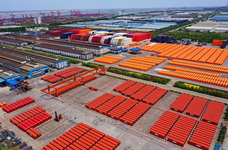 El 7 de mayo de 2019, el patio de la Compa?ía CIMC Taicang en la provincia de Jiangsu, muestra los contenedores de colores. Foto de Diario del Pueblo