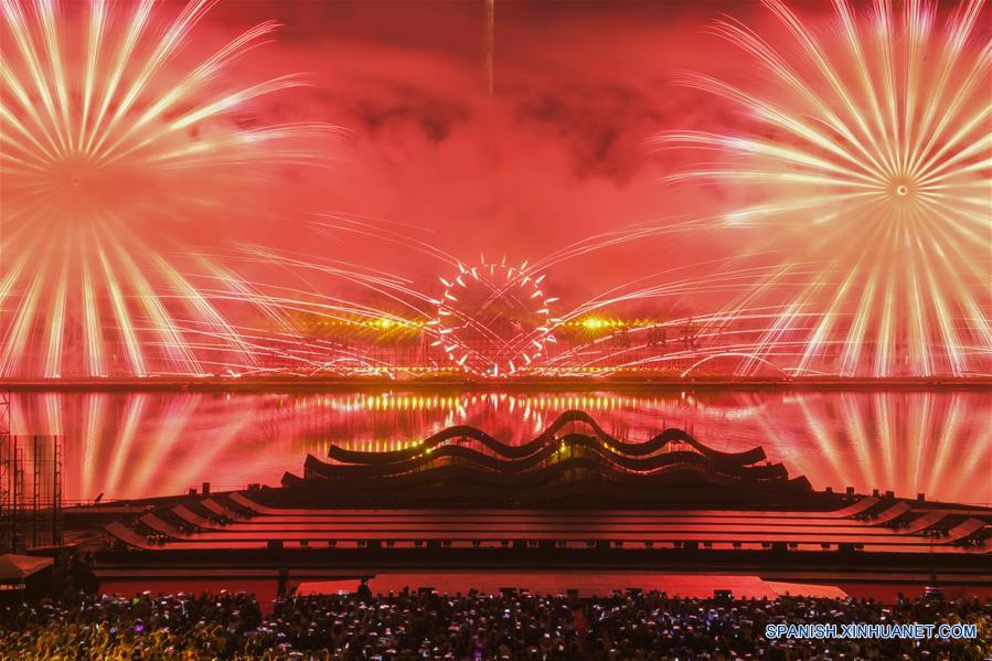 HUNAN, 12 mayo, 2019 (Xinhua) -- Imagen del 10 de mayo de 2019 de la ceremonia de inauguración del 14 Festival Cultural Internacional de Fuegos Artificiales de China (Liuyang), celebrado en la ciudad de Liuyang, en la provincia de Hunan, en el centro de China. Liuyang es conocido por su industria de fuegos artificiales. (Xinhua/Chen Zeguo)