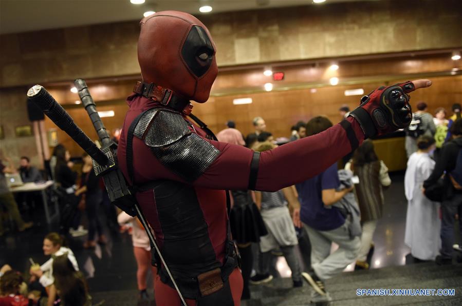 MONTEVIDEO, 11 mayo, 2019 (Xinhua) -- Un participante realizando cosplay del personaje "Deadpool" posa durante la 17 edición de "Montevideo Comics", en el Auditorio Nacional del Sodre, en Montevideo, capital de Uruguay, el 11 de mayo de 2019. De acuerdo con información de la prensa local, el evento más importante para los aficionados de las historietas del país busca posicionarse como una de las mejores opciones culturales y de entretenimiento de la ciudad y ofrece una vasta agenda de actividades que se desarrollan en simultáneo en el Auditorio Nacional del Sodre y el Centro Cultural de Espa?a durante los días 11 y 12 de mayo. (Xinhua/Nicolás Celaya)