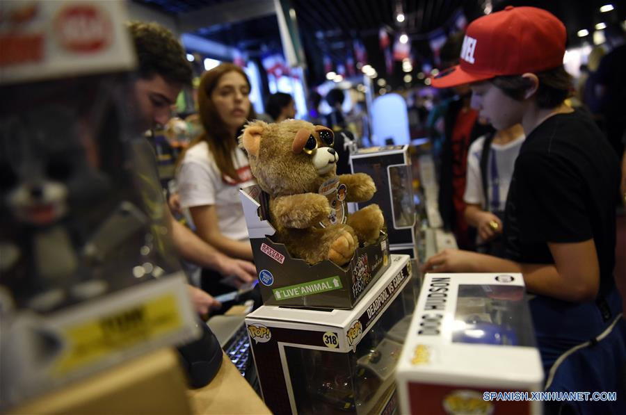 MONTEVIDEO, 11 mayo, 2019 (Xinhua) -- Un ni?o compra mu?ecos durante la 17 edición de "Montevideo Comics", en el Auditorio Nacional del Sodre, en Montevideo, capital de Uruguay, el 11 de mayo de 2019. De acuerdo con información de la prensa local, el evento más importante para los aficionados de las historietas del país busca posicionarse como una de las mejores opciones culturales y de entretenimiento de la ciudad y ofrece una vasta agenda de actividades que se desarrollan en simultáneo en el Auditorio Nacional del Sodre y el Centro Cultural de Espa?a durante los días 11 y 12 de mayo. (Xinhua/Nicolás Celaya)