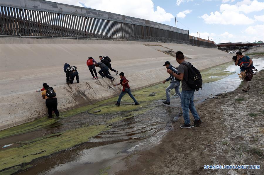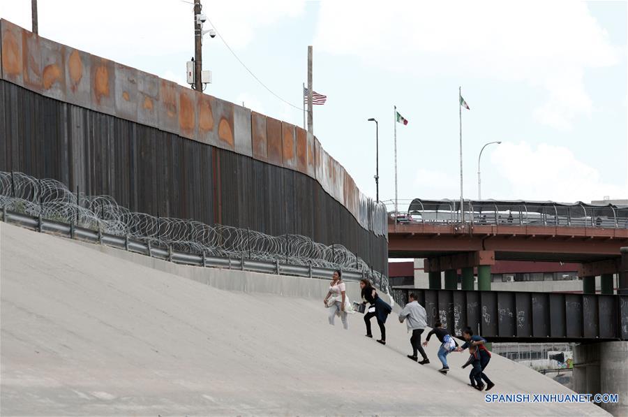 CIUDAD JUAREZ, 11 mayo, 2019 (Xinhua) -- Migrantes caminan frente al muro fronterizo entre México y Estados Unidos, cerca del Puente Internacional Santa Fe, en Ciudad Juárez, estado de Chihuahua, México, el 11 de mayo de 2019. De acuerdo con información de la prensa local, un grupo de migrantes provenientes de Centroamérica se entregó a autoridades estadounidenses con el fin de solicitar asilo político tras cruzar ilegalmente la frontera a través del Río Bravo. (Xinhua/Christian Torres)