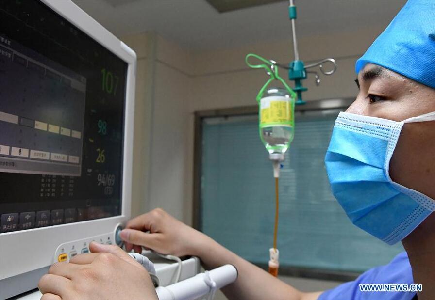 Xie Yadong instala el monitor en el Hospital del Pueblo de Henan, Zhengzhou, provincia de Henan, 10 de mayo del 2019. Xie, de 29 a?os, ha trabajado durante cinco a?os en este hospital. [Foto: Xinhua]