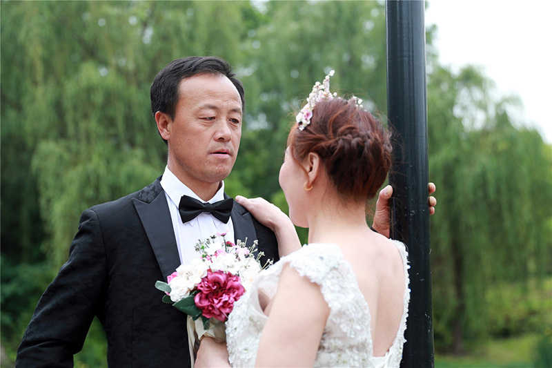 Una pareja prueba diferentes poses en la sesión de fotos. Gracias a un programa patrocinado por el Centro de Servicio de Yangpu, un total de 50 parejas del distrito Yangpu, en Shanghai, que laboran en servicios comunales, podrán hacerse fotos matrimoniales. Este programa tiene como objetivo expresar la gratitud de la ciudad por sus trabajadores comunales. [Foto: Bo Kelin/ Chinadaily.com.cn]
