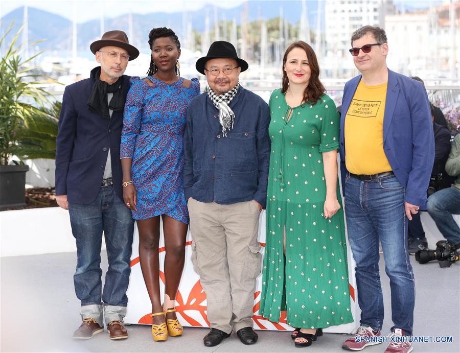 CANNES, 15 mayo, 2019 (Xinhua) -- El presidente del jurado de la Cámara de Oro y director de cine de Camboya, Rithy Panh (c), junto con los otros miembros del jurado Benoit Delhomme (i), Alice Diop (2-i), Sandrine Marques (2-d) y Nicolas Naegelen (d) posan durante una sesión fotográfica en la 72 edición del Festival de Cine de Cannes, en Cannes, Francia, el 15 de mayo de 2019. La 72 edición del Festival de Cine de Cannes se lleva cabo en Cannes del 14 al 25 de mayo. (Xinhua/Gao Jing)