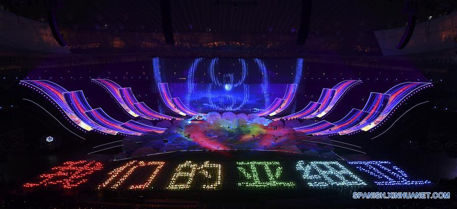 BEIJING, 15 mayo, 2019 (Xinhua) -- Artistas presentan la canción y baile "A Youthful Asia" en el carnaval de la cultura asiática, que se lleva a cabo en el Estadio Nacional, o Nido de Pájaro, en Beijing, capital de China, el 15 de mayo de 2019. (Xinhua/Shen Bohan)