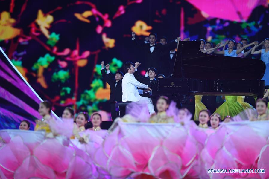 BEIJING, 15 mayo, 2019 (Xinhua) -- El pianista chino, Lang Lang, participa en la presentación oral y orquestal de "Our Asia" en el carnaval de cultura asiática durante la Conferencia sobre el Diálogo de las Civilizaciones Asiáticas (CDAC), en el Estadio Nacional, o Nido de Pájaro, en Beijing, capital de China, el 15 de mayo de 2019. (Xinhua/Ju Huanzong)
