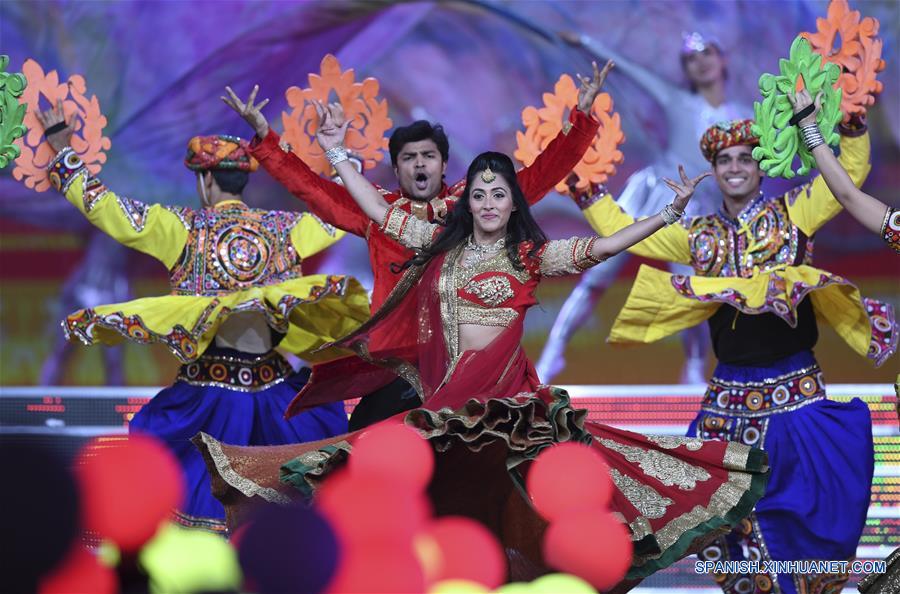 BEIJING, 15 mayo, 2019 (Xinhua) -- Artistas presentan la danza "Passion of Joy" en el carnaval de cultura asiática durante la Conferencia sobre el Diálogo de las Civilizaciones Asiáticas (CDAC), en el Estadio Nacional, o Nido de Pájaro, en Beijing, capital de China, el 15 de mayo de 2019. (Xinhua/Wang Yuguo)