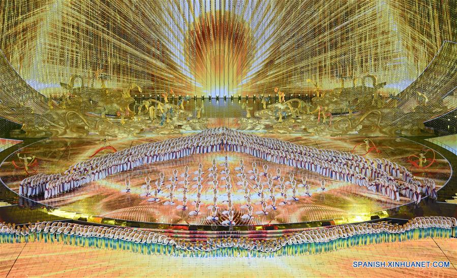 BEIJING, 15 mayo, 2019 (Xinhua) -- Artistas presentan la canción y danza "A Panorama of Asia" en el carnaval de cultura asiática durante la Conferencia sobre el Diálogo de las Civilizaciones Asiáticas (CDAC), en el Estadio Nacional, o Nido de Pájaro, en Beijing, capital de China, el 15 de mayo de 2019. (Xinhua/Ju Huanzong)