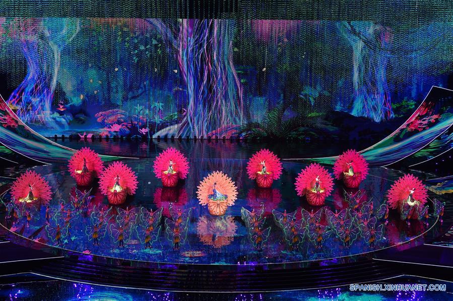 BEIJING, 15 mayo, 2019 (Xinhua) -- Artistas presentan la canción y danza "A Panorama of Asia" en el carnaval de la cultura asiática, que se lleva a cabo en el Estadio Nacional, o Nido de Pájaro, en Beijing, capital de China, el 15 de mayo de 2019. (Xinhua/Shen Bohan)