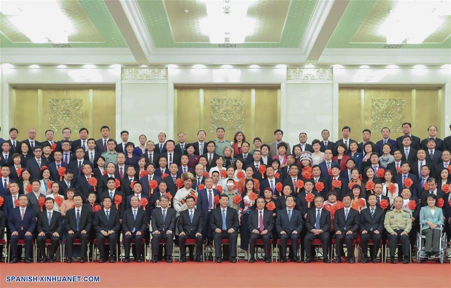 El presidente chino, Xi Jinping, también secretario general del Comité Central del Partido Comunista de China (PCCh) y presidente de la Comisión Militar Central, se reúne con representantes que asisten a una ceremonia para galardonar a personas modelo con discapacidades y personas que han hecho contribuciones sobresalientes para ayudar a los discapacitados, en el Gran Palacio del Pueblo, en Beijing, capital de China, el 16 de mayo de 2019. El primer ministro Li Keqiang y Wang Huning, miembro del Secretariado del Comité Central del PCCh, ambos miembros del Comité Permanente del Buró Político del Comité Central del PCCh, también se reunieron con los representantes. (Xinhua/Ding Lin)