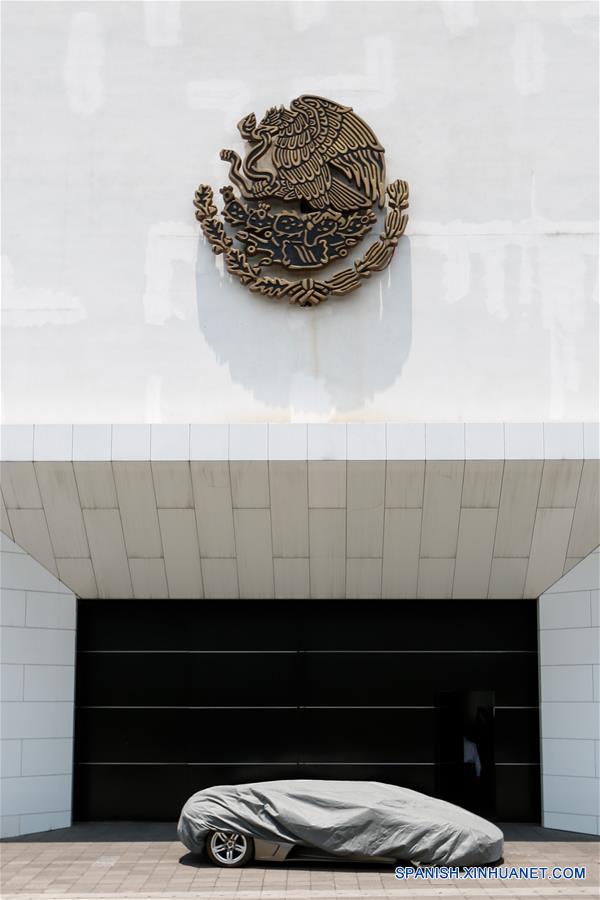 Un vehículo cubierto es exhibido al público previo a su subasta, en el Complejo Cultural Los Pinos, en la Ciudad de México, capital de México, el 21 de mayo de 2019. Un Lamborghini Murciélago plateado, pasando por una tanqueta militar, una ambulancia equipada y hasta un Volkswagen sedán, serán subastados a martillo el domingo en la capital mexicana. Los recursos que se obtengan serán destinados para ayudar a las dos comunidades más pobres del país, enclavadas en el sure?o estado de Oaxaca, precisó el martes el presidente mexicano Andrés Manuel López Obrador. (Xinhua/Francisco Ca?edo)