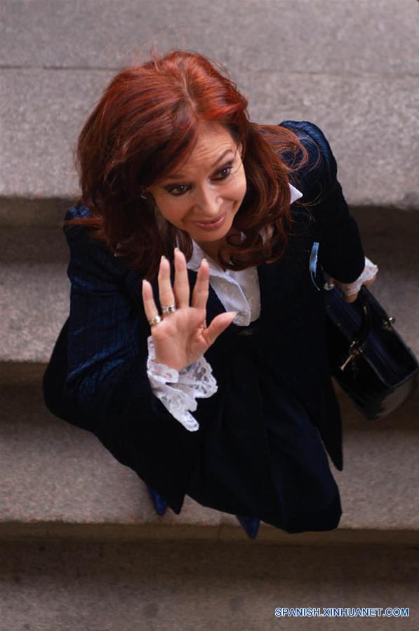 Imagen proveída por la agencia de noticias Télam, de la ex presidenta de Argentina, Cristina Fernández, llegando a los tribunales federales de Comodoro Py, en Buenos Aires, Argentina, el 21 de mayo de 2019. La ex presidenta de Argentina, Cristina Fernández (2007-2015), denunció el martes que enfrenta una "persecución" en su contra en un a?o electoral en el país sudamericano. (Xinhua/Carlos Brigo/TELAM)