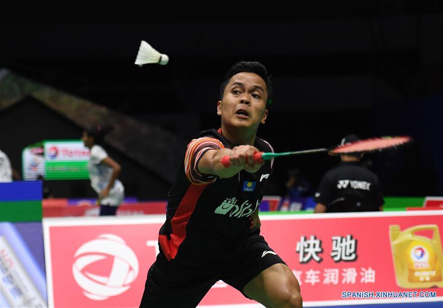 GUANGXI, 22 mayo, 2019 (Xinhua) -- Anthony Sinisuka Ginting, de Indonesia, devuelve el volante a Viktor Axelsen, de Dinamarca, durante el partido individual varonil de la fase de grupos de la Copa Sudirman 2019 de la Federación Mundial de Bádminton (BWF, por sus siglas en inglés), celebrado en Nanning, en la Región Autónoma Zhuang de Guangxi, en el sur de China, el 22 de mayo de 2019. (Xinhua/Zhou Hua)
