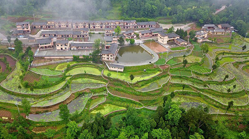 El 16 de mayo del 2019, en la aldea Baiping, municipio de Zhugong, condado de Nanjiang, provincia de Sichuan, las casas recién remozadas y los lotos recién emergidos constituyen una hermosa imagen de la nueva realidad del campo chino. (Foto: Xiao Dinghuai/ Diario del Pueblo)