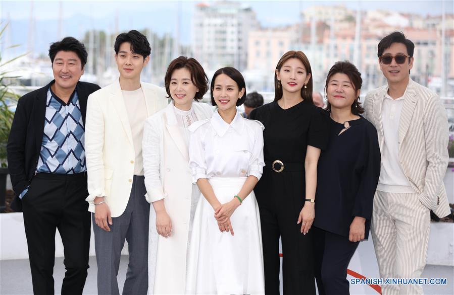 CANNES, 22 mayo, 2019 (Xinhua) -- Los miembros del elenco de "Parasite" posan en una sesión fotográfica durante la 72 edición del Festival de Cine de Cannes, en Cannes, Francia, el 22 de mayo de 2019. "Parasite" competirá por la Palma de Oro junto a otras 20 películas. (Xinhua/Gao Jing)