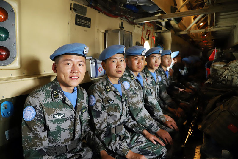 Los soldados ya en el avión con destino a Líbano, el 22 de mayo de 2019. [Foto de Sun Shuai para chinadaily.com.cn]