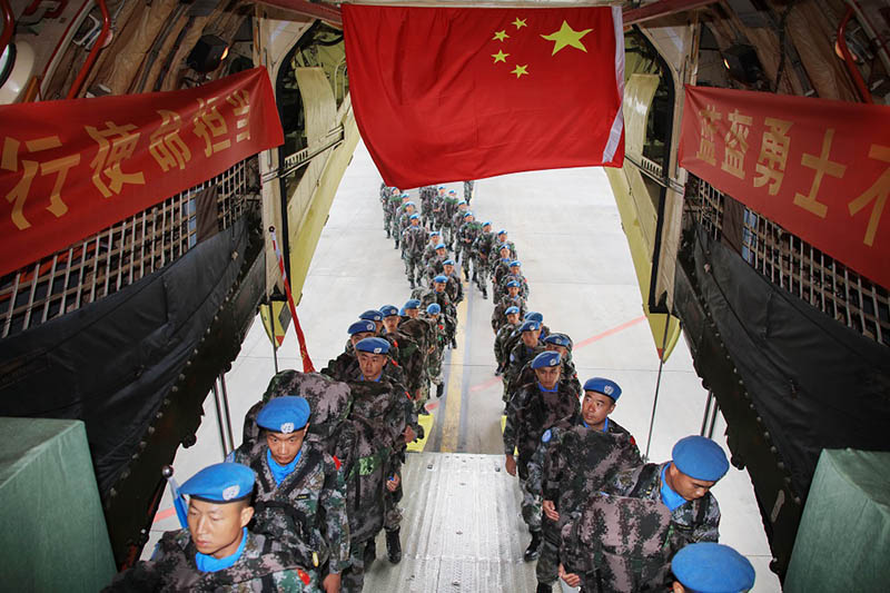 El personal de mantenimiento de la paz comienza a abordar el avión que los llevará a su misión en Líbano, el 22 de mayo de 2019. [Foto de Peng Xi para chinadaily.com.cn]