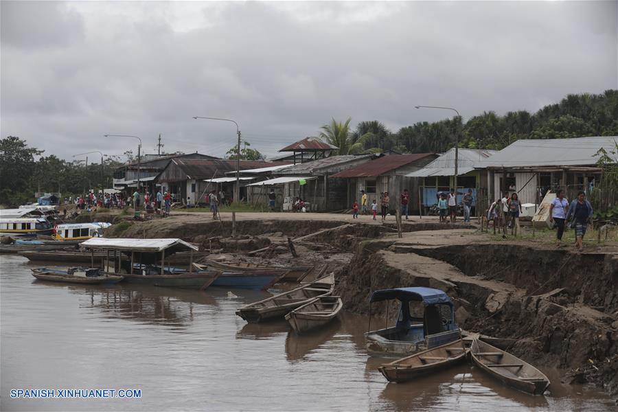 Personas caminan por un área afectada del puerto de Santa Gema tras un sismo, en las afueras de Yurimaguas, Perú, el 26 de mayo de 2019. Una persona muerta y otras 11 heridas en Perú es el saldo preliminar del terremoto de magnitud 7,5 en la escala de Richter registrado la madrugada del domingo en el norte del país andino, confirmó el coordinador del Centro de Operaciones de Emergencia Nacional (COEN), Ricardo Seijas. (Xinhua/Guadalupe Pardo/Pool)