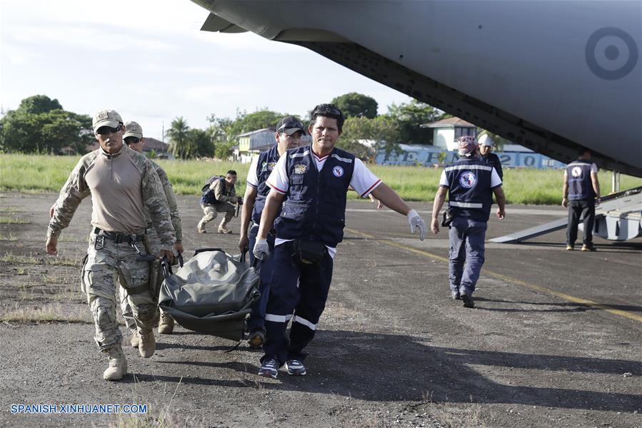 Militares y miembros de los cuerpos de rescate trasladan ayuda para las personas afectadas tras un sismo, en las afueras de Yurimaguas, Perú, el 26 de mayo de 2019. Una persona muerta y otras 11 heridas en Perú es el saldo preliminar del terremoto de magnitud 7,5 en la escala de Richter registrado la madrugada del domingo en el norte del país andino, confirmó el coordinador del Centro de Operaciones de Emergencia Nacional (COEN), Ricardo Seijas. (Xinhua/Guadalupe Pardo/Pool)