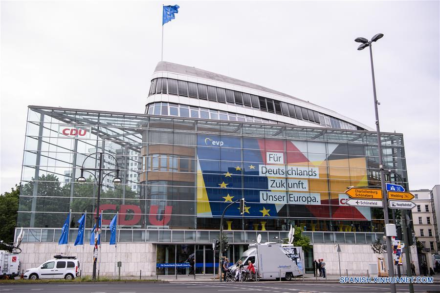 Vista de la sede del partido Unión Cristianodemócrata (CDU, por sus siglas en inglés), en Berlín, Alemania, el 26 de mayo de 2019. El bloque conservador de la canciller Angela Merkel, formado por la Unión Demócrata Cristiana (CDU) y la Unión Socialcristiana (CSU, por sus siglas en inglés) aseguró 28 por ciento de los votos. Aunque mantuvo la mayor cuota, la unión política perdió cerca del ocho por ciento de los votos en comparación con hace cinco a?os. (Xinhua/Kevin Voigt)