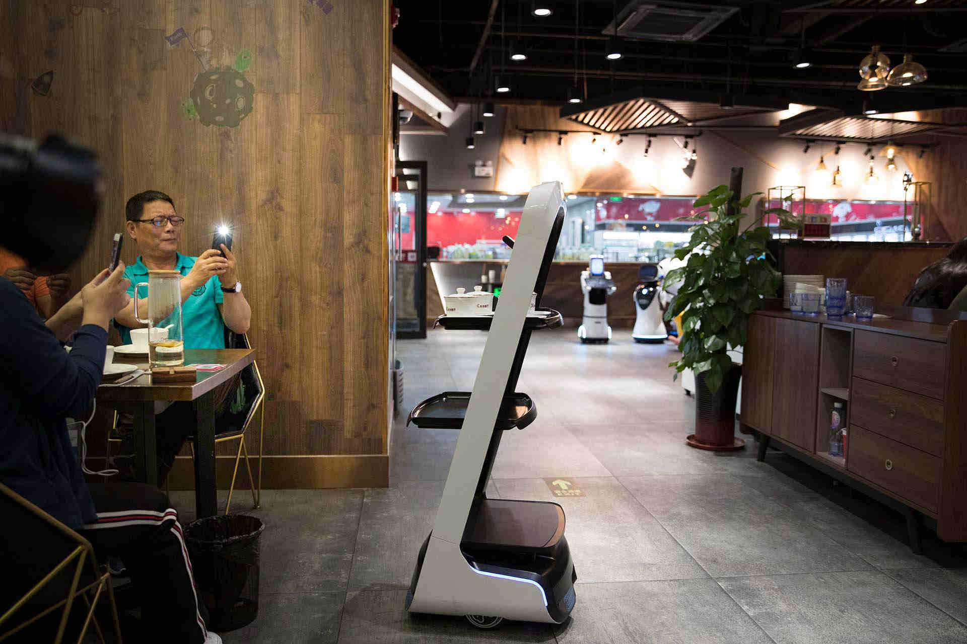 Robots que sirven comida en un restaurante en la Nueva área de Binhai. (Pueblo en Línea, por Tanja Herko)