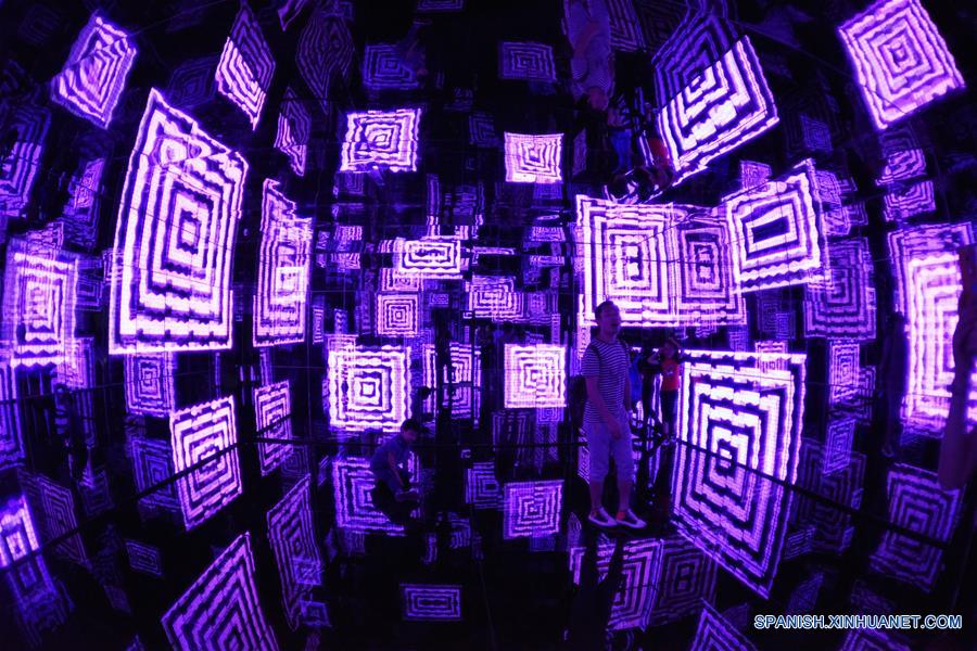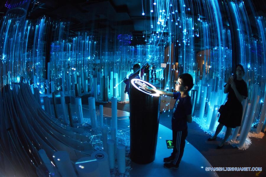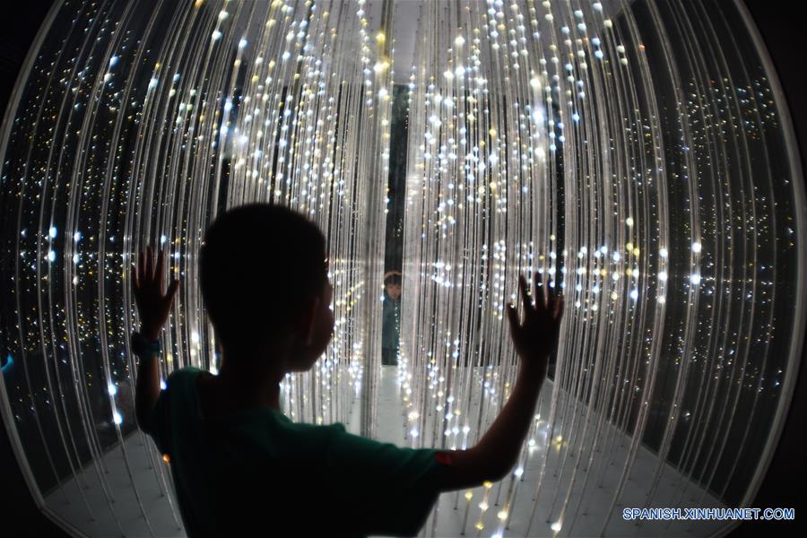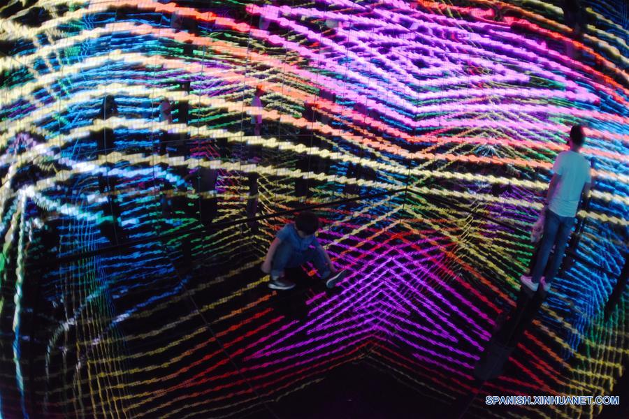 GUIZHOU, 27 mayo, 2019 (Xinhua) -- Visitantes observan una exhibición de arte digital, durante la Exposición Internacional sobre la Industria de los Macrodatos 2019, en Guiyang, capital de la provincia de Guizhou, en el suroeste de China, el 27 de mayo de 2019. La exhibición es parte de la Exposición Internacional sobre la Industria de los Macrodatos 2019, de cuatro días de duración, que comenzó el 26 de mayo de 2019. (Xinhua/Yang Wenbin)
