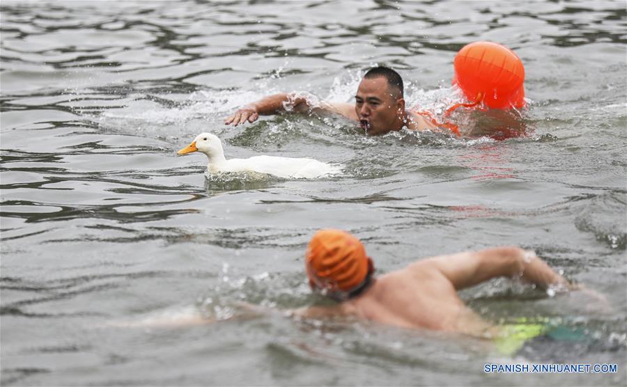 SICHUAN, 29 mayo, 2019 (Xinhua) -- Dos hombres compiten en un evento de atrapar un pato en el Río Yujiang, como parte de las costumbres populares tradicionales para celebrar el próximo Festival Duanwu, en el condado de Changning de Yibin, en la provincia de Sichuan, en el suroeste de China, el 29 de mayo de 2019. El Festival Duanwu se celebra tradicionalmente en el quinto día del quinto mes del calendario lunar chino. (Xinhua/Zhuang Geer)