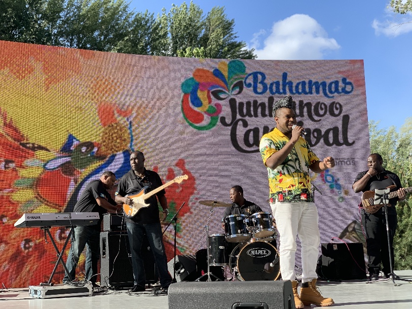 Banda de Bahamas presenta un espectáculo en Día de Cultura Caribe?a de la Expo.(Xinhua)