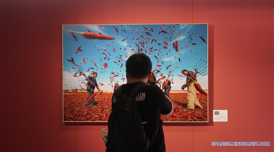 BEIJING, 31 mayo, 2019 (Xinhua) -- Un visitante toma fotografías de un trabajo fotográfico durante una exposición con el tema de mitigación de la pobreza llevada a cabo en el Museo del Milenio de China, en Beijing, capital de China, el 31 de mayo de 2019. Una exposición fotográfica con el tema de mitigación de la pobreza comenzó el viernes en el Museo del Milenio de China. Unos 88 trabajos fotográficos serán exhibidos hasta el 16 de junio. (Xinhua/Cai Yang)