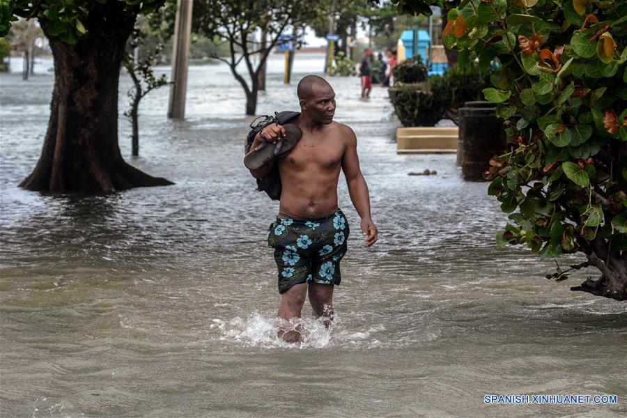 Imagen del 10 de septiembre de 2017 de un hombre caminando por una calle inundada debido a las penetraciones del mar producidas por el huracán Irma, en la barriada del Vedado, en el municipio Plaza de la Revolución en La Habana, Cuba. La temporada ciclónica que inicia el sábado para la región del Atlántico Norte y el Mar Caribe tendría un comportamiento próximo a lo normal con el desarrollo de 11 organismos, de acuerdo con pronósticos de expertos cubanos. (Xinhua/Joaquín Hernández)