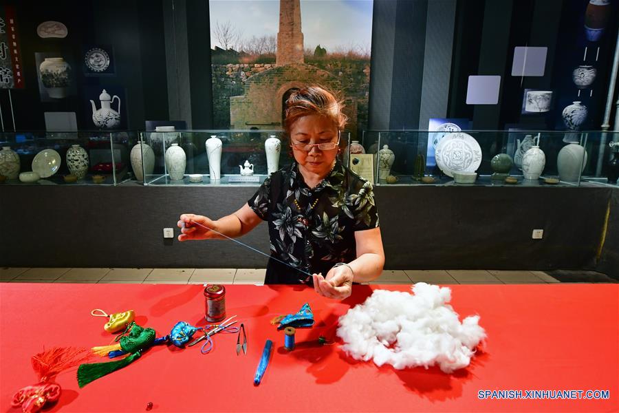 HENAN, 3 junio, 2019 (Xinhua) -- Imagen del 2 de junio de 2019 de Lu Ailing, elaborando almohadillas perfumadas en la Sala de Exposiciones de Patrimonio Cultural Inmaterial de Zhengzhou, en Zhengzhou, capital de la provincia de Henan, en el centro de China. Las almohadillas perfumadas es una artesanía de bordado tradicional en China. Lu Ailing, de 63 a?os de edad, quien nació en una familia de fabricantes de almohadillas perfumadas, es una heredera del patrimonio cultural inmaterial de almohadillas perfumadas en Zhengzhou. Al heredar las habilidades de elaboración de almohadillas perfumadas de su abuela, Lu también pone mucha atención a la innovación de sus modelos, creando una gran variedad de adornos de almohadillas perfumadas y pendientes. Ella cree que el secreto nuclear de las almohadillas es su fragancia. Después de a?os de experiencia buscando en las tiendas de medicina tradicional china, Lu Ailing ha creado su receta única. El deseo más grande de Lu Ailing es ver la artesanía siendo heredada de generación a generación. "Me da gusto observar a tantas personas que aman las almohadillas perfumadas y desean aprender como elaborarlas", dijo Lu. (Xinhua/Feng Dapeng)