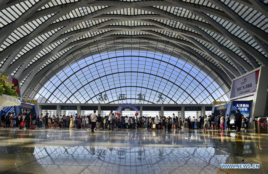 Los pasajeros esperan en la estación Tianjin Oeste, de la ciudad de Tianjin, el 9 de junio del 2019. Este domingo, la temporada alta de viajes por el Festival del Bote del Dragón llegó a su fin. (Foto: Xinhua/ Yang Baosen)