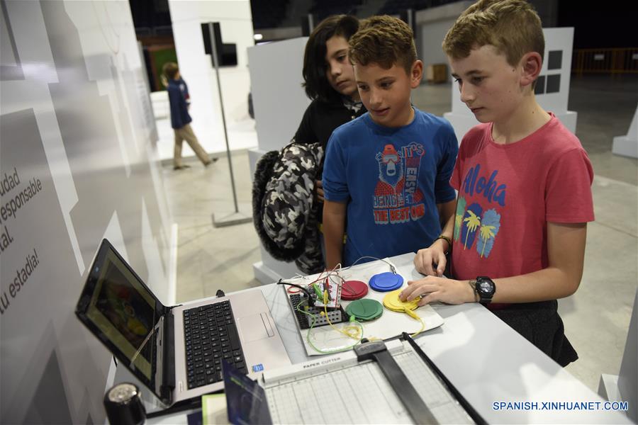 MONTEVIDEO, 10 junio, 2019 (Xinhua) -- Ni?os prueban un juego durante la primera edición de la Expo Innovación, en el recinto Antel Arena, en Montevideo, capital de Uruguay, el 10 de junio de 2019. De acuerdo con información de la prensa local, Expo Innovación, que se lleva a cabo del 8 al 16 de junio, es un espacio para toda la familia que tiene como objetivo que el público pueda conocer y experimentar los proyectos más innovadores que se están desarrollando en Uruguay en diversos ámbitos como salud, tecnología, transporte, educación, robótica, movilidad eléctrica, entre otros, por medio de diferentes espacios orientados a grandes y chicos. (Xinhua/Nicolás Celaya)