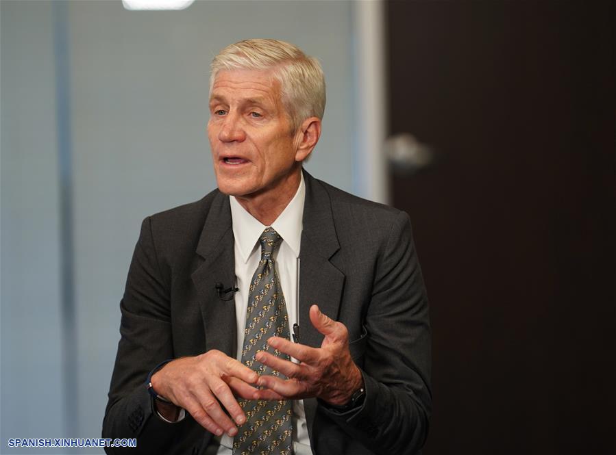 Imagen del 23 de mayo de 2019 de Bob Margevicius, miembro de la junta directiva de la Asociación de Proveedores de Productos de Bicicletas de Estados Unidos, participando en una entrevista con Xinhua, en Washington D.C., Estados Unidos. China sigue siendo la mejor fuente de bicicletas para las compa?ías estadounidenses, y es difícil para ellas recurrir rápidamente a otras alternativas ya que los aranceles agregados están alterando la cadena de suministro global, aseguró un experto de la industria en entrevista con Xinhua. (Xinhua/Liu Jie)