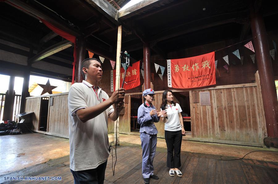 Periodistas participan en una entrevista colectiva durante una actividad para seguir las huellas de la Gran Marcha, en un sitio revolucionario en la ciudad de Ruijin, en la provincia de Jiangxi, en el este de China, el 11 de junio de 2019. La actividad tiene como objetivo rendir homenaje a los mártires revolucionarios y transmitir las tradiciones de la revolución, en un a?o en que el país celebra el 70 aniversario de la fundación de la República Popular China. Más de 500 periodistas de más de 30 medios de comunicación de todo el país asistieron a las ceremonias. La Gran Marcha fue una maniobra militar llevada a cabo por el Ejército Rojo de Obreros y Campesinos de China entre 1934 y 1936. Durante este período, los soldados dejaron atrás sus bases y marcharon a través de ríos, monta?as y praderas para romper el asedio de las fuerzas del Kuomintang y continuar con su lucha contra los agresores japoneses. Muchos caminaron hasta 12.500 kilómetros. (Xinhua/Li Renzi)