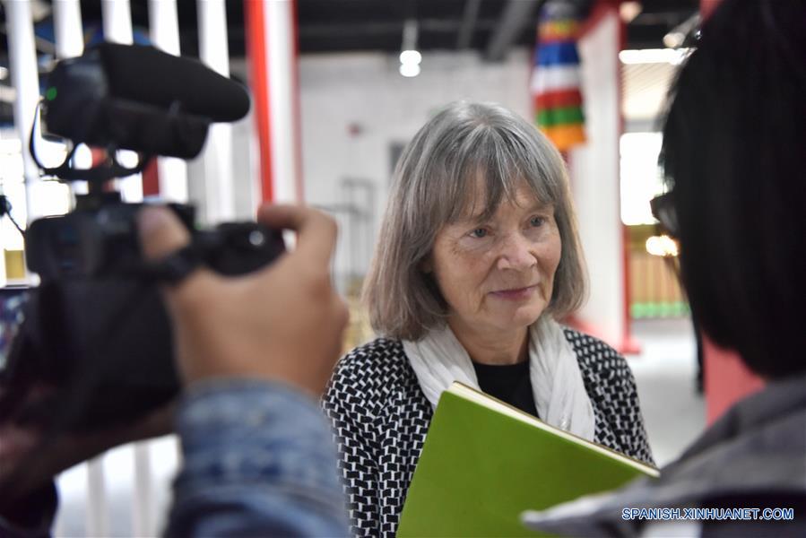 Imagen del 10 de junio de 2019, de Elizabeth Mcleod, directora general de Meridian Line Films en Reino Unido, participando durante una entrevista mientras visita un espacio de creadores, en Nyingchi, en la Región Autónoma del Tíbet, en el suroeste de China. Cerca de 30 periodistas de Reino Unidos, Italia, Suiza, Argentina y Nepal, así como expertos extranjeros que trabajan para medios de comunicación chinos visitaron de lunes a miércoles Nyingchi. (Xinhua/Zhou Jinshuai)