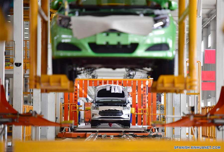SHAANXI, 13 junio, 2019 (Xinhua) -- Imagen del 12 de junio de 2019 de una vista de vehículos de nueva energía en la línea de montaje en la planta de Xi'an de BYD Auto, en Xi'an, provincia de Shaanxi, en el noroeste de China. Las ventas de vehículos de nueva energía (NEV, por sus siglas en inglés) continuaron creciendo el mes pasado, aumentando un 1,8 por ciento interanual, según la Asociación de Automóviles de Pasajeros de China. El gobierno anunció a principios de este mes medidas para incrementar las ventas de automóviles, como prohibir a los gobiernos locales imponer un límite al consumo y uso de los NEV. (Xinhua/Shao Rui)